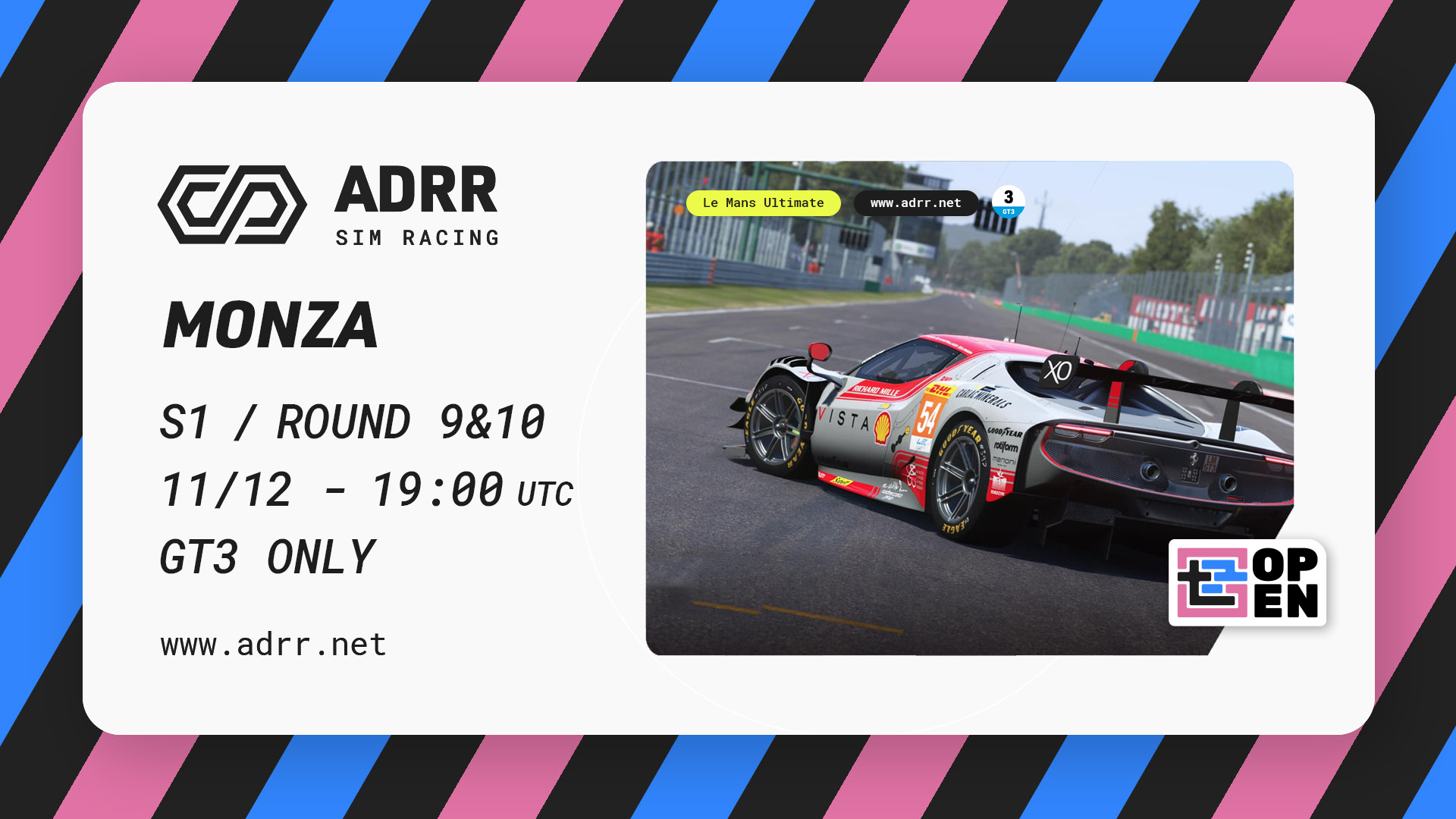 Multi-Class racing, fortnightly on Thursday nights. Following the calendar of the pro esports series by Virtual Motorsports.